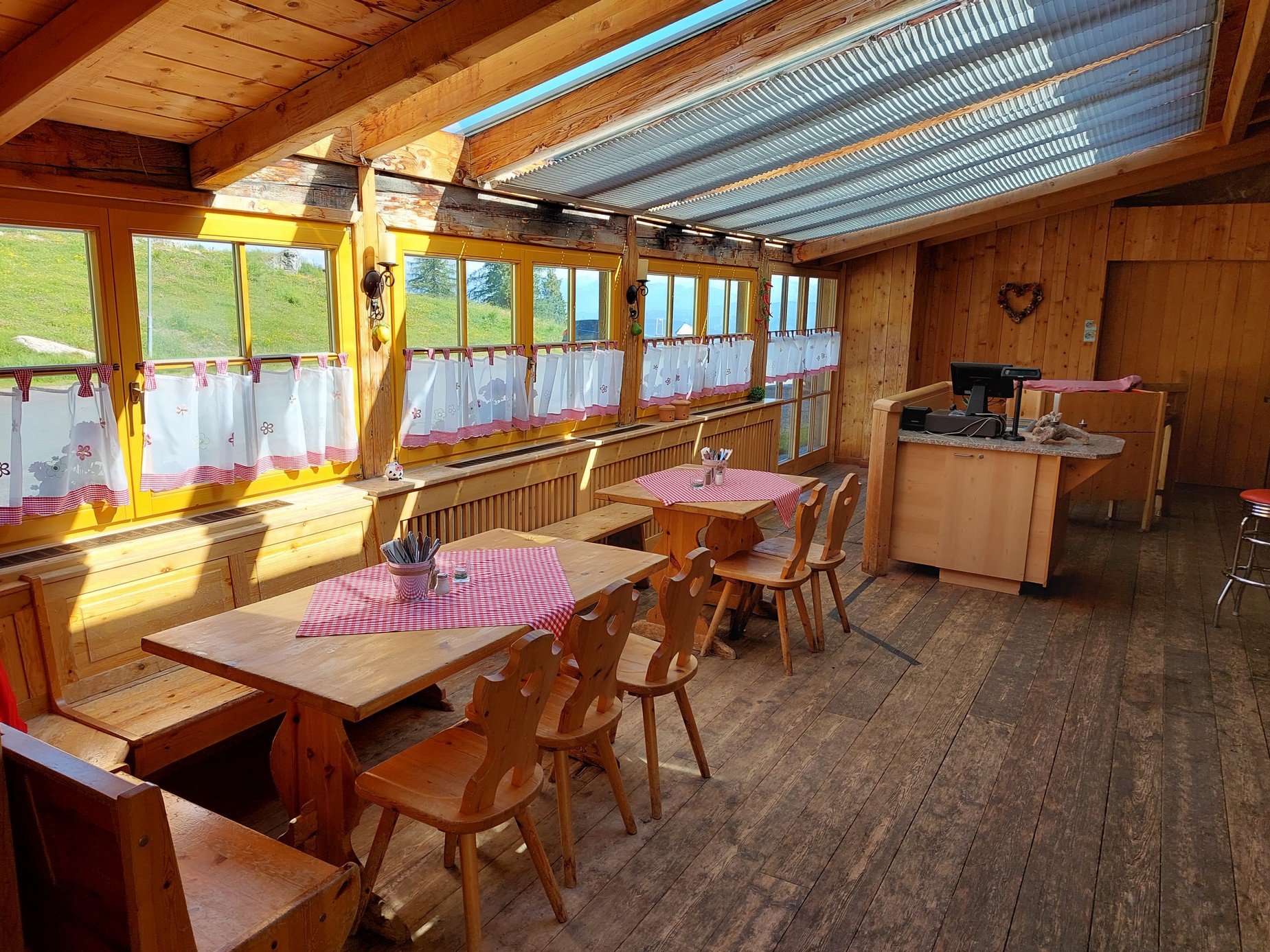 Kalte Gerichte wie eine herzhafte Alm-Jause und warme Gerichte wie ein saftiger Schweinsbraten oder ein allseits beliebtes Schnitzel. Auch für Vegetarier werden leckere Speisen angeboten – ein Spätzle mit würzigem Alm-Käse lässt die Geschmacksnerven vibrieren. Auf die kleinen Gäste warten die heißgeliebten Schmankerln wie zum Beispiel Berner Würstel, Chicken Nuggets oder Pommes.
