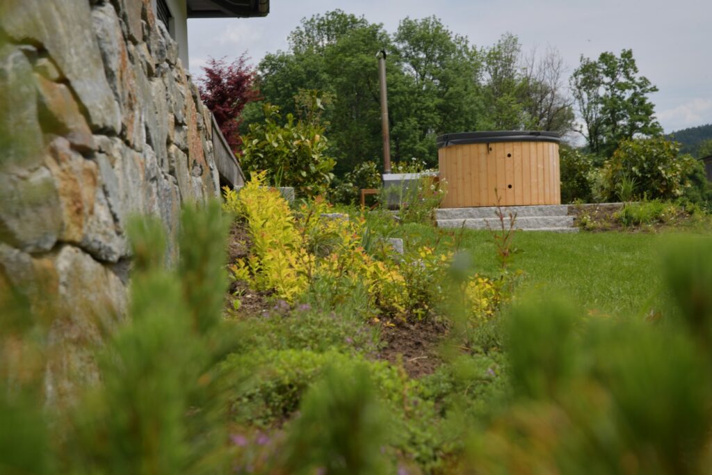 Die Eheleute wünschten sich seit 2017 einen Zweitwohnsitz in Kärnten. Schlussendlich erfüllten sie sich diesen langjährigen Wunsch mit dem Kauf eines Baugrundstückes in Untervellach bei Hermagor. Dort sollte rund um den Neubau ein grüner, wenig, gießintensiver, pflegeleichter, blühender, eleganter und charakteristischer Außenbereich entstehen.
