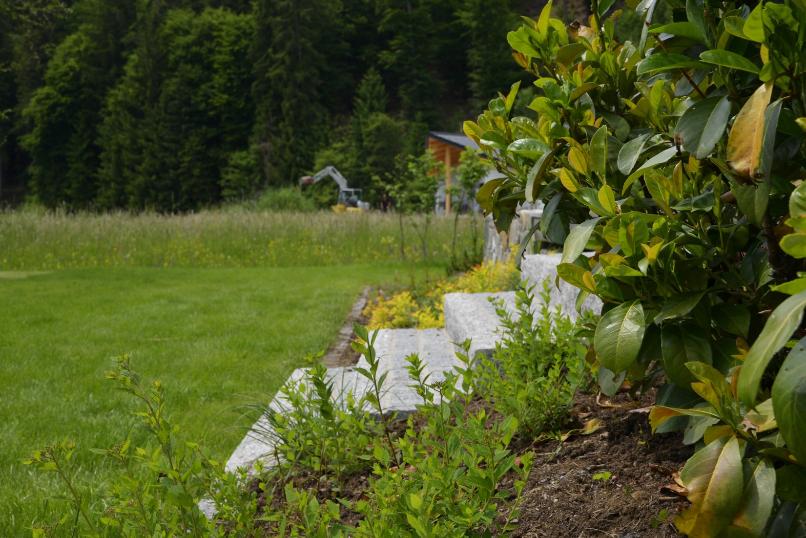 Der besondere Appell an Andreas Wieser lautete vor der Umsetzung: Die Aussicht auf die unverbaubare Naturlandschaft zu erhalten und trotzdem eine Abgrenzung und einen Sichtschutz zu den umliegenden Grundstücken zu schaffen. Weiter sollte der Garten über eine gewisse Selbstständigkeit verfügen, denn er müsse aufgrund des deutschen Wohnsitzes auch einige Tage bis Wochen ohne die pflegenden Hände des Ehegespanns auskommen.