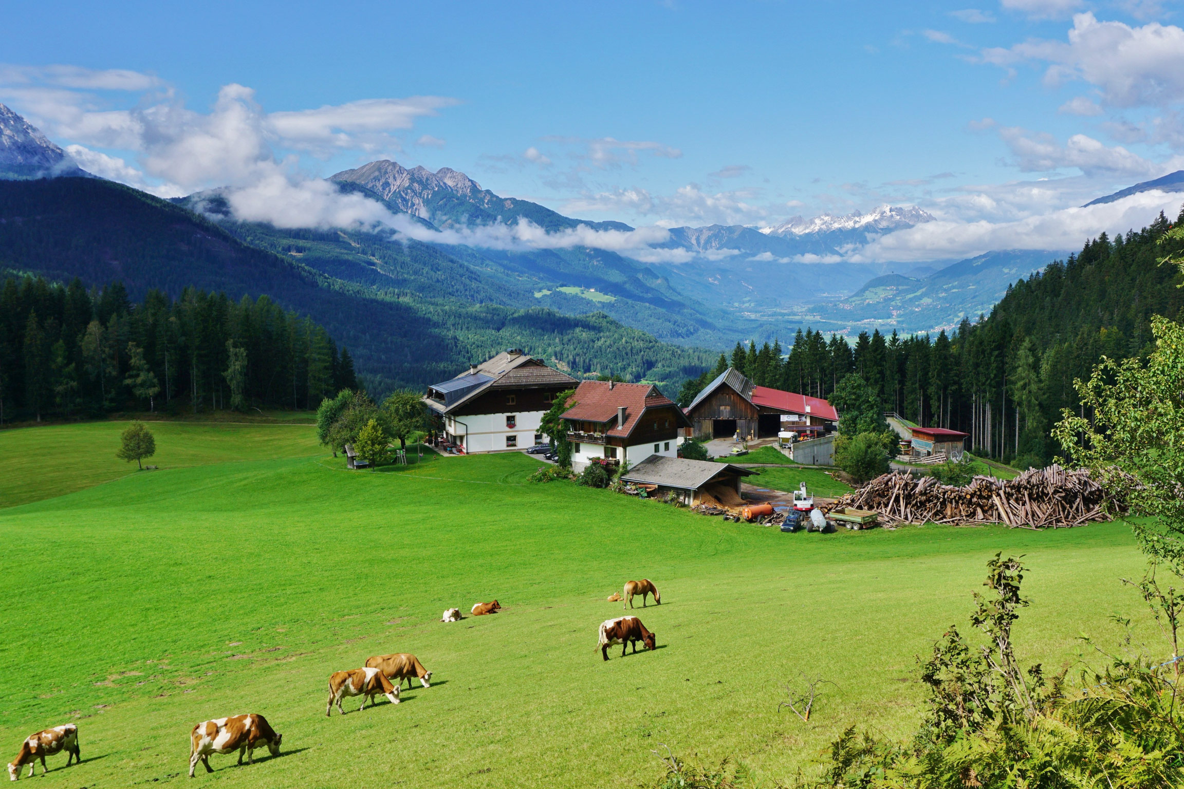 Ein Blick über den Tschabitscherhof am Weissensee in die Lienzer Dolomiten, (c) tschabitscher.at