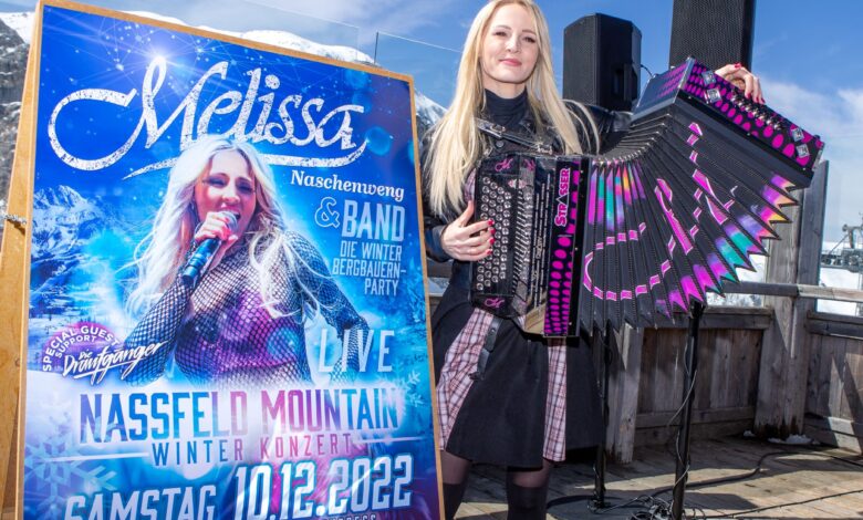 Die Lesachtaler Senkrechtstarterin Melissa Naschenweng gastiert am 10. Dezember 2022 bei der Talstation Millennium-Express in Tröpolach und wird beim Nassfeld Mountain Winterkonzert vor eindrucksvoller Bergkulisse die Wintersaison 2022/2023 einläuten. Tickets & Mehr unter winterkonzert.nassfeld.at.