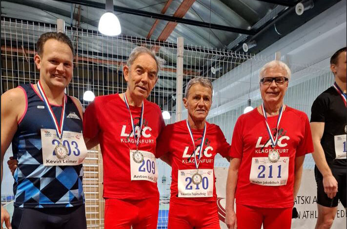 Herausragend dabei Valentin Topitschnig. Der LAC-Klagenfurt-Athlet stürmte über die 400 Meter in 71,66 Sekunden zu einem neuen österreichischen M75-Hallenrekord und holte sich den Tagessieg in seiner Altersklasse.