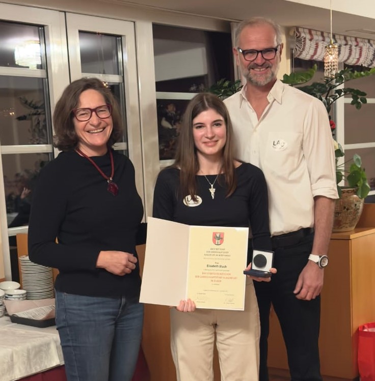 Klagenfurts Sportstadträtin, Constance Mochar, ließ es sich nicht nehmen bei der LAC-Klagenfur-Weihnachtsfeier vorbeizuschauen und persönlich Elisabeth Bluch zu ihrem österreichischen U23-Meistertitel im Dreisprung zu gratulieren. Im Gepäck hatte sie für die junge Lindwurmstädterin das Sportehrenzeichen in Silber der Landeshauptstadt.