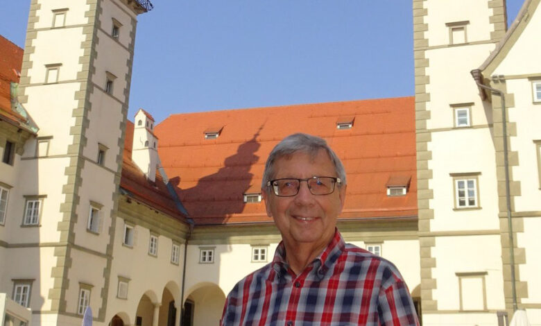 Historiker Rudolf Siegl vor dem Landhaus in Klagenfurt. Er hat Biographien aller 493 Landtagsabgeordneten zwischen 1848 und 1938 erstellt. © Geschichtsverein/Markus Böhm