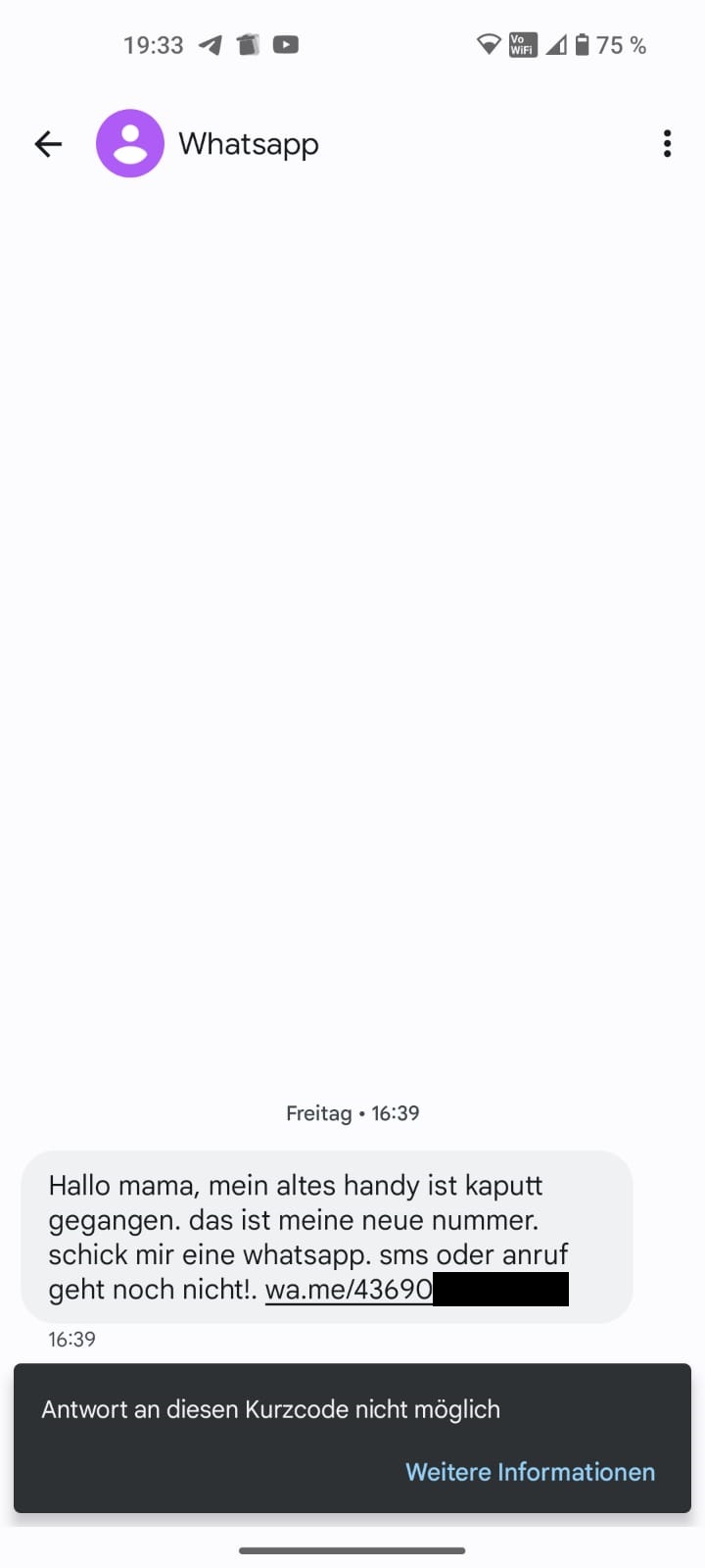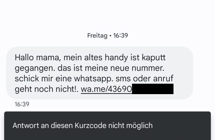 Hallo Mama, dein Paket konnte nicht zugestellt werden, du erhältst eine Rückerstattung, aber dein Konto wurde eingeschränkt.