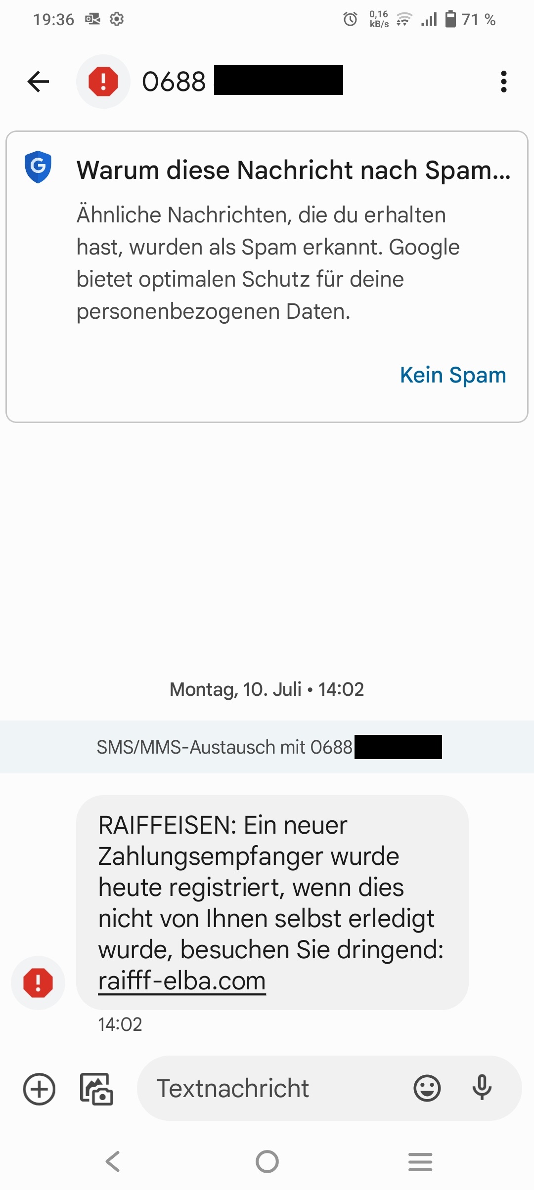 Betrüger versuchen von allen Seiten, an Ihre Daten zu gelangen. Uns wurden bereits Spam-Nachrichten von der „Sparkasse“, der „Raiffeisen Bank“ sowie der „BAWAG“ gesendet.