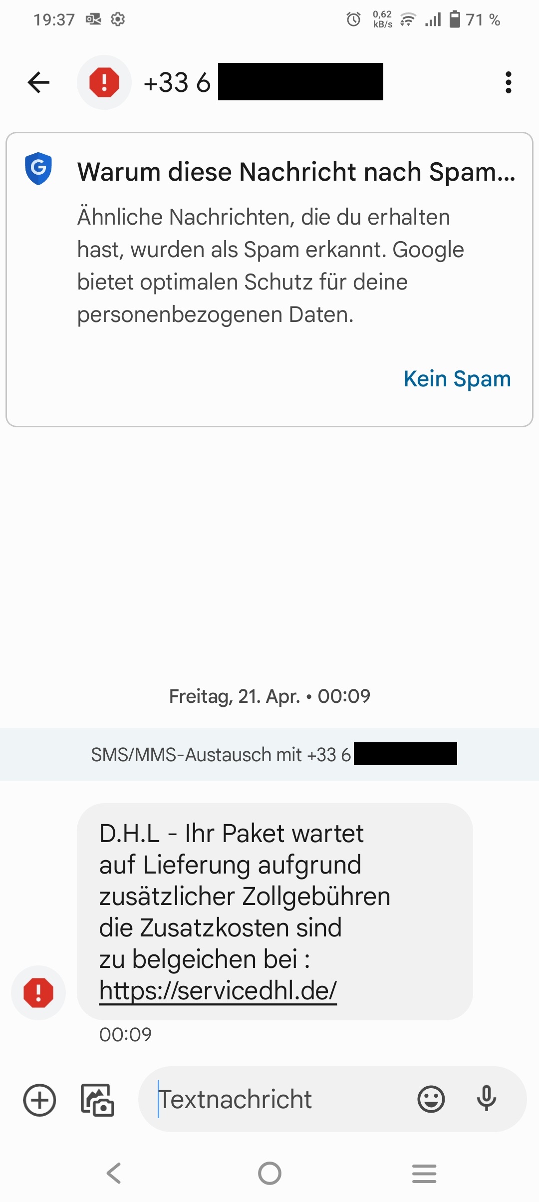 3. Klicken Sie keinesfalls auf Links oder rufen Sie die Telefonnummern in diesen Nachrichten an.