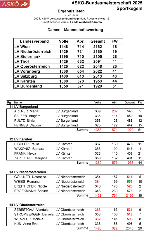 Zum Pfingstwochenende fanden traditionell die ASKÖ Bundesmeisterschaften im Sportkegeln statt. Unter der Leitung des Landesreferenten Dipl.Ing. Christian Matitz wurden die Mannschaftbewerbe Damen und Herren, sowie ein Tandem Mixed Bewerb im Leistungszentrum des Kärntner Sportkeglerverbandes ausgetragen.