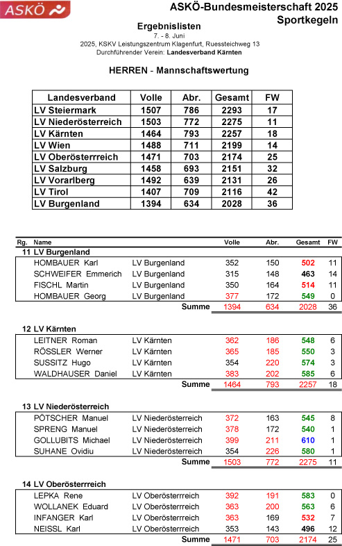 1. LV Steiermark (Marcel Trescher, Armin Stocker, Michael Raunigg u. Gerhard Plank) mit 2293 Kegel