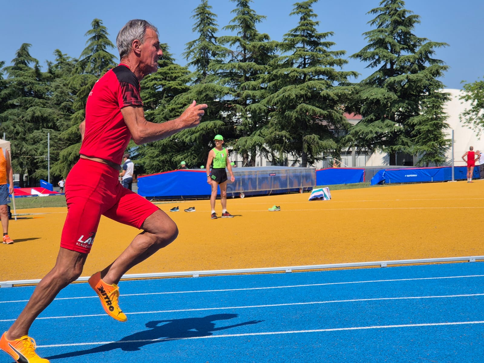 Großer Auftritt von Valentin Topitschnig (Foto Laimer) beim internationalen Masters-Meeting in Görz/ITA.  Der LAC-Klagenfurt- M75-Athlet stürmte in 71,15 Sekunden zu einem neuen sensationellen österreichischen Rekord über die 400 Meter. Den bisherigen Rekord verbesserte er gleich mehr als zwei Sekunden und ist damit Nr. 11 in der Weltbestenliste!