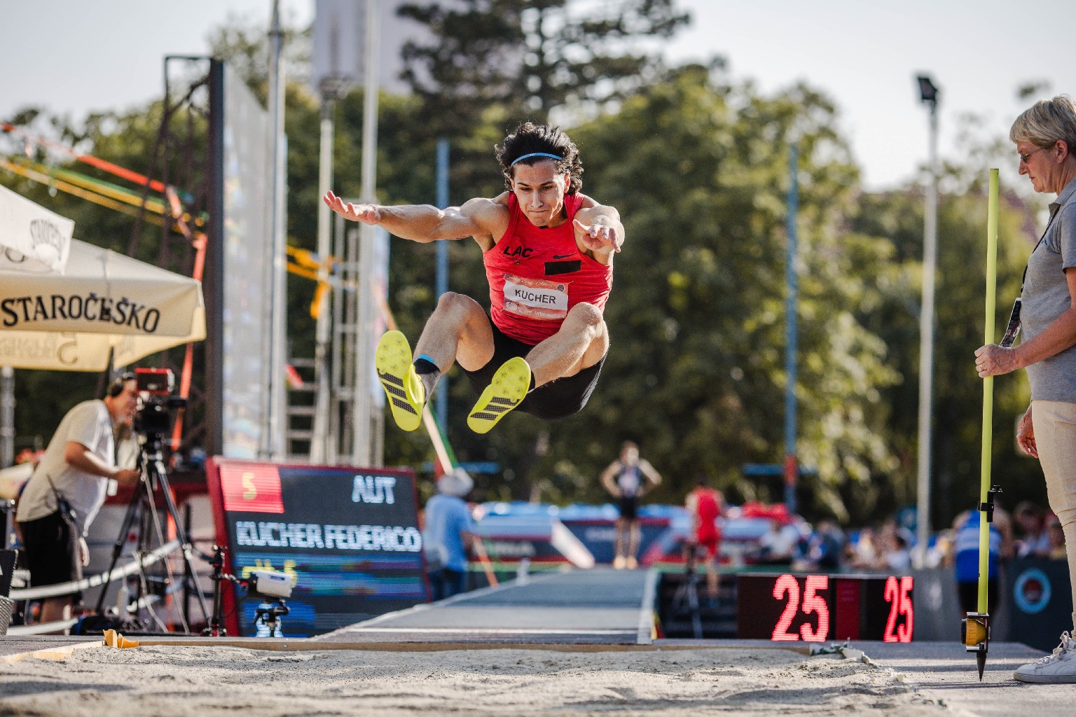 Gleich bei zwei WACT-Bronze-Meeting (World Athletics Continental Tour) in Slowenien war Weitsprungaushängeschild Federico Kucher (Foto ÖLV Martina Albel) im Einsatz.  Im Rahmen des „25. Mednarodi“ Meetings in Slovenska Bistrica setzte der LACler 6,91 Meter in den Sand des Sportni parks. Noch besser erging es ihm in Maribor. Erstmals in der Freiluftsaison sprang er weiter als 7 Meter. Mit 7,04 Meter setzt er sich auf Rang 4 der österreichischen Jahresbestenliste.