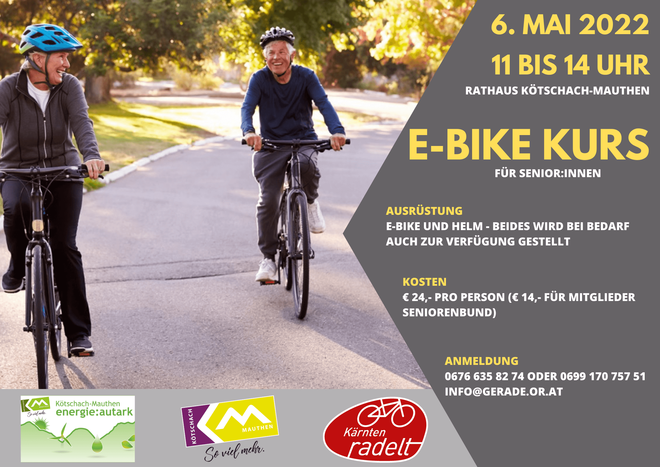 E-Bike Kurs für Senior:innen  – von 11 bis 14 Uhr, kostenpflichtig, Anmeldung erforderlich
