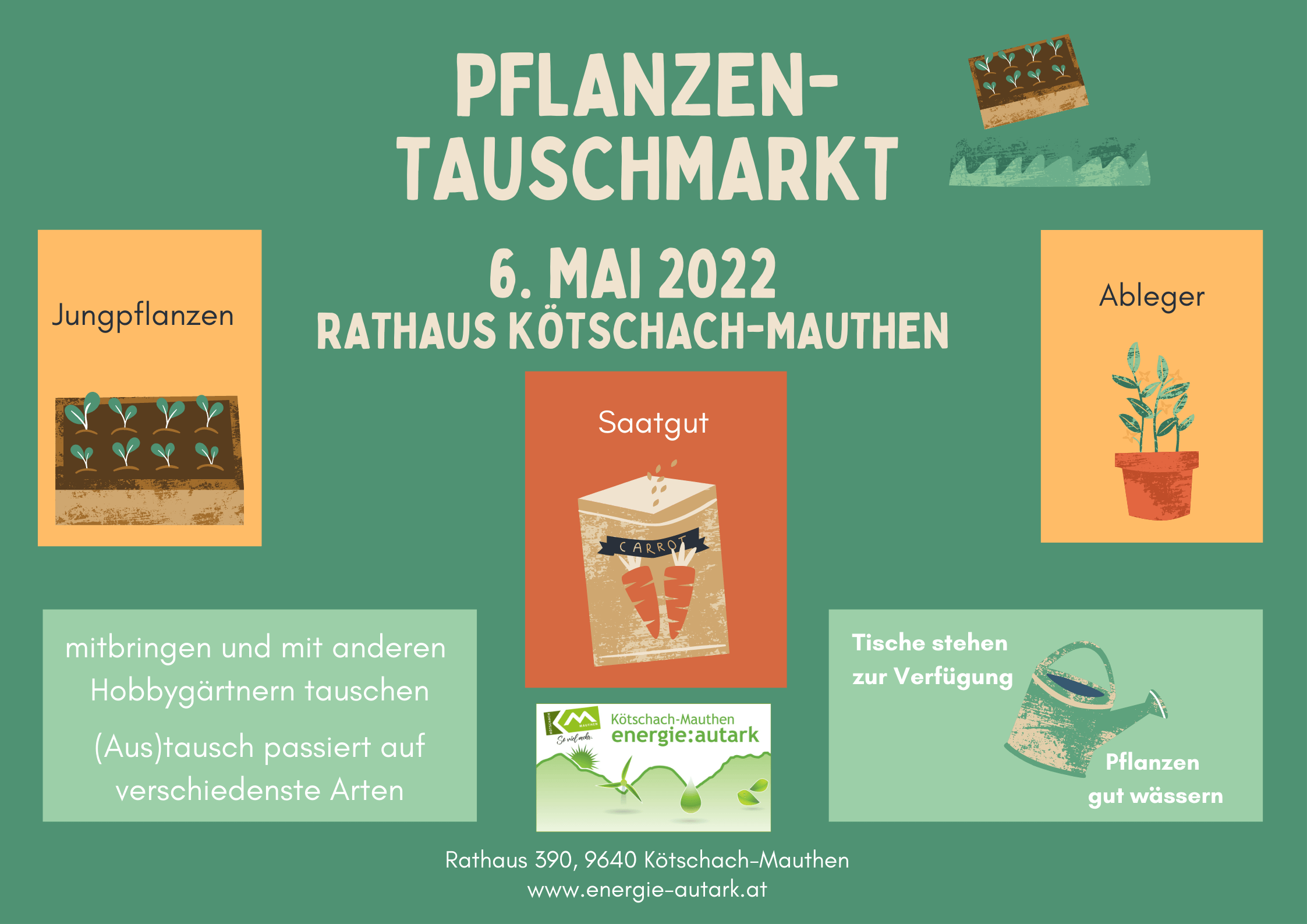 Bringen Sie Ihre (Jung)pflanzen, Ableger, Saatgut etc. und tauschen Sie mit anderen Hobbygärtnern. Der (Aus)tausch passiert auf verschiedenen Arten und Weisen. WICHTIG: vor dem Markt noch gut wässern. Tische stehen zur Verfügung!