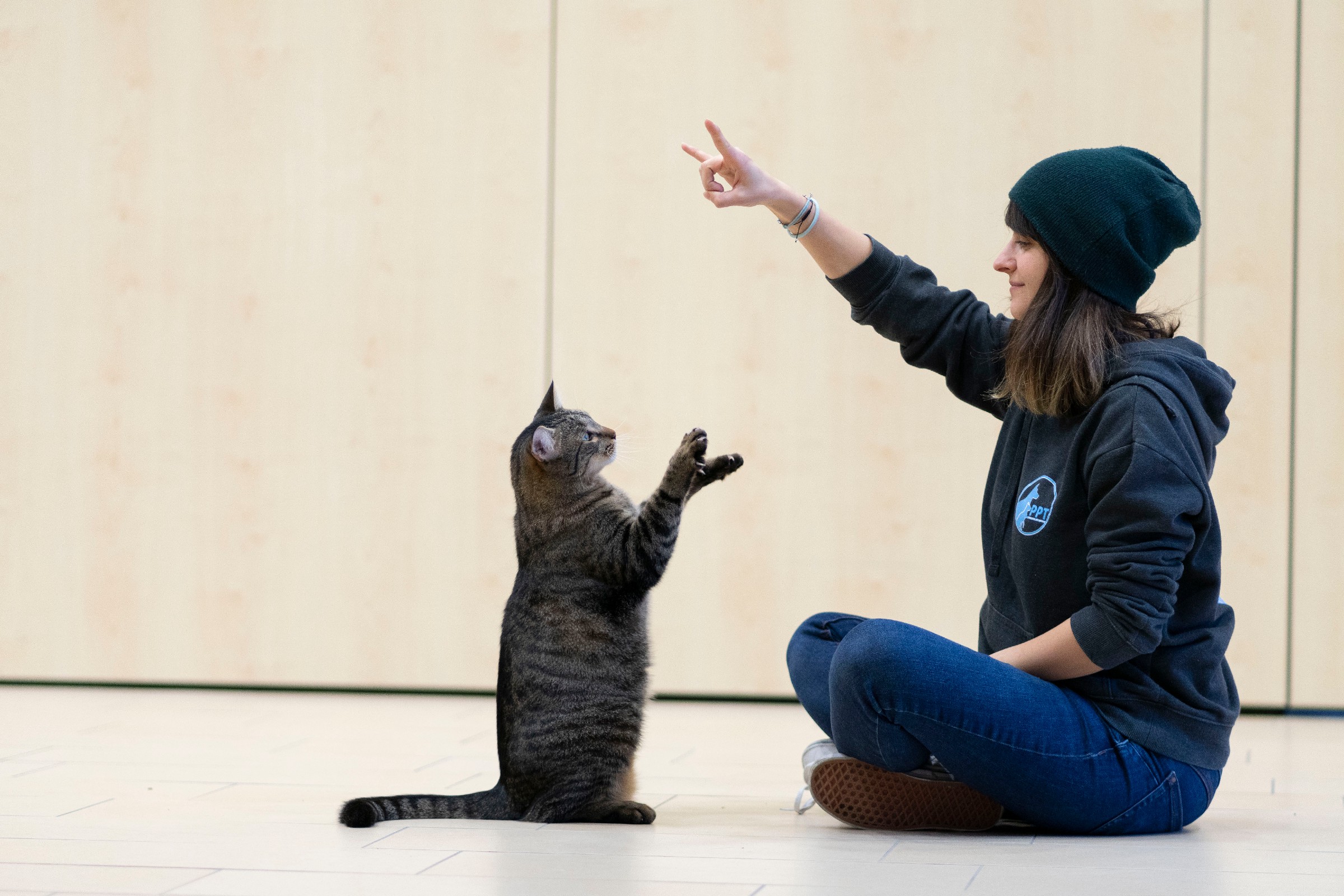 Mit dabei ist Kater Aidan – er unterstützt die Referentin bei kleinen Live-Demonstrationen und zeigt, wie viel Potenzial in unseren Stubentigern steckt.