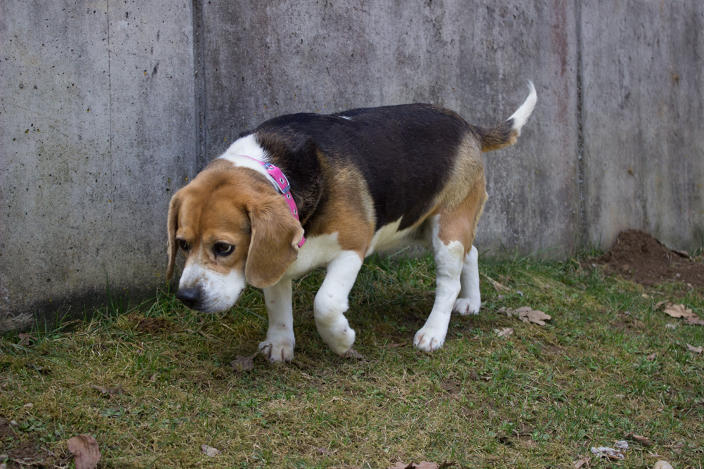 Rassetypisch steckt meine Nase ständig am Boden – schließlich könnte irgendwo ein leckerer Krümel auf mich warten! Ich liebe Futter und bin immer für ein Leckerchen zu haben. Aber mal ehrlich: Ein bisschen weniger davon und ein paar entspannte Spaziergänge würden mir guttun.